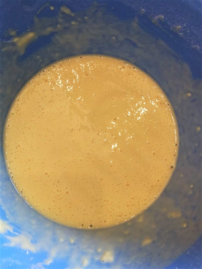 In una terrina sbattiamo l’uovo con un cucchiaino di zucchero, il lievito e un buon pizzico di sale. Aggiungiamo il latte e mescoliamo. Infine aggiungiamo a neve la farina setacciata, sempre mescolando. Ne deve uscire una pastella abbastanza densa, senza grumi. Copriamo la terrina e mettiamola in frigorifero per almeno 15 minuti.