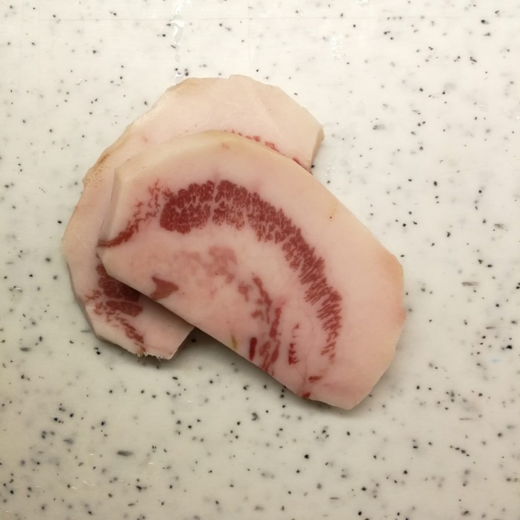 A questo punto si può dar via alla cottura della pasta. Poi, in una padella che la tradizione vorrebbe di ferro (ma va bene anche una antiaderente) mettiamo senza nulla il nostro guanciale che avremmo mondato della cotenna e tagliato a cubetti e lasciamo soffriggere (chi vuole può far sfumare un po’ di vino bianco, ma io non lo faccio). Facciamo sciogliere il grasso, lasciamo diventare croccante i cubetti. Togliamo il grasso liquido e aggiungiamo le fette di guanciale e facciamole diventare croccanti. Anche le fette di guanciale rilasceranno grasso. Una volta diventate croccanti, togliamo tutto il guanciale (cubetti e fette), mettiamo un cucchiaio di grasso nella salsa. Aggiungiamo un po’ di peperoncino tritato in quantità a piacere. Uniamo la pasta al dente alla salsa e facciamola saltare. Proprio all’ultimo aggiungiamo il guanciale a cubetti, mentre terremo da parte le fette croccanti. Tutto è pronto.